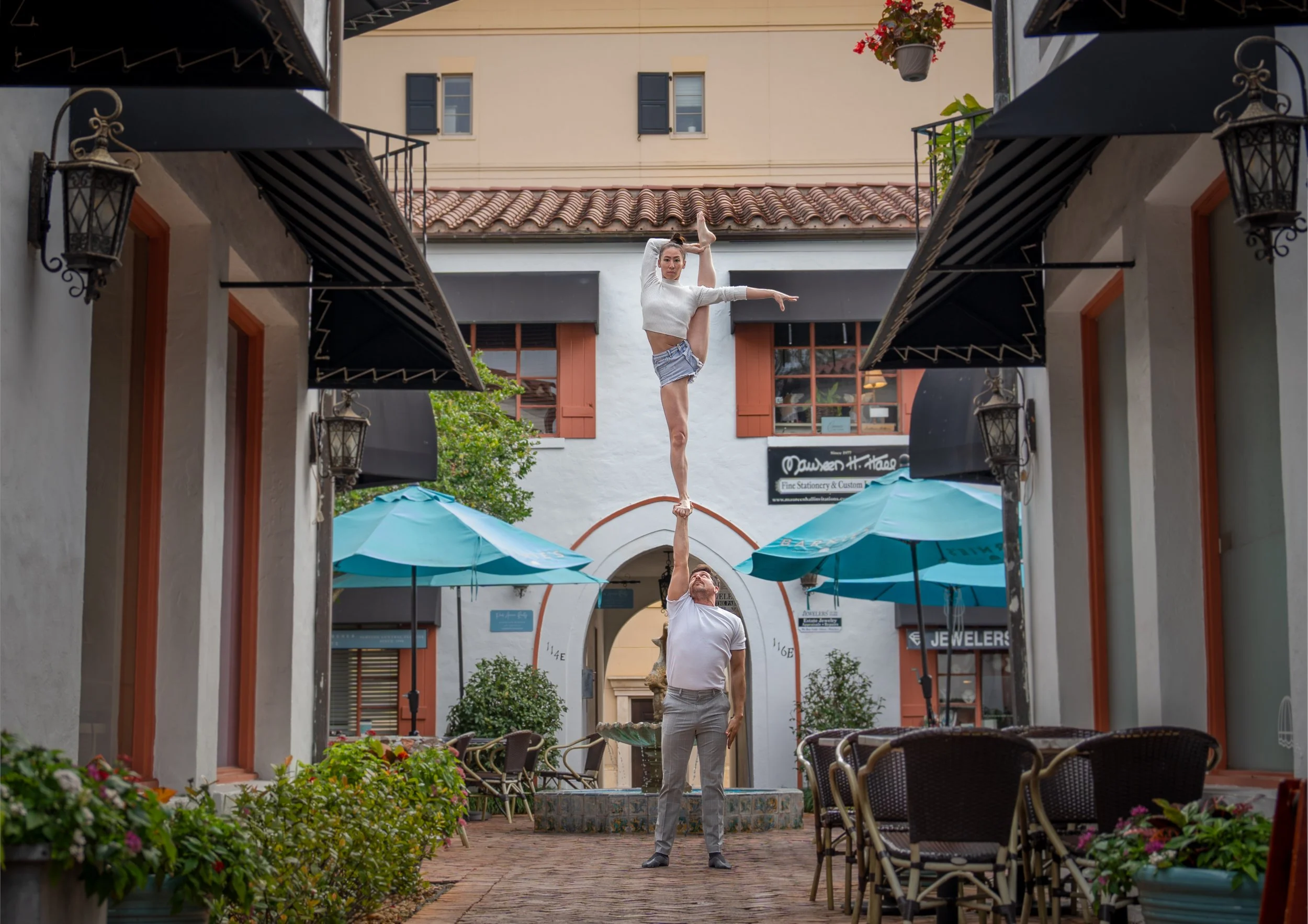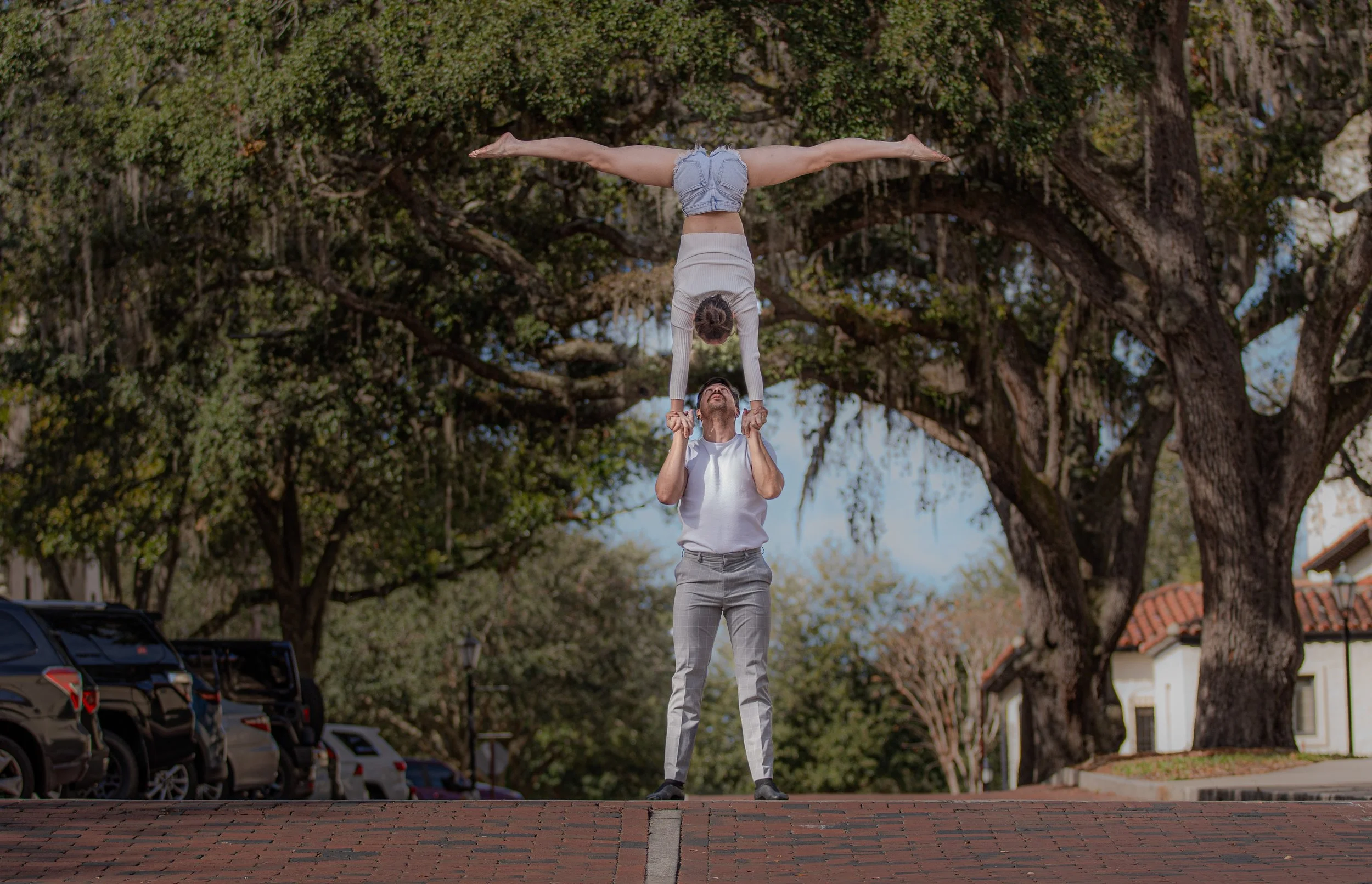 A dynamic performance act where we work together to create stunning lifts, balances, and synchronized movements.